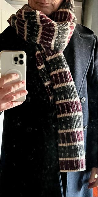 Bufanda de punto con un diseño de rayas clásico. Es suave y cálida. - Diseño de rayas horizontales. - Tejido acanalado.