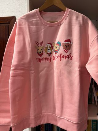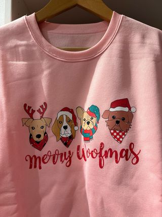Sudadera con un divertido estampado navideño de perros y el mensaje Merry Woofmas. - Diseño con varios perros con gorros y bufandas navideñas. - Mensaje Merry Woofmas en letras rojas. - Cuello redondo y manga larga. nuevo a estrenar calentita ideal navidad