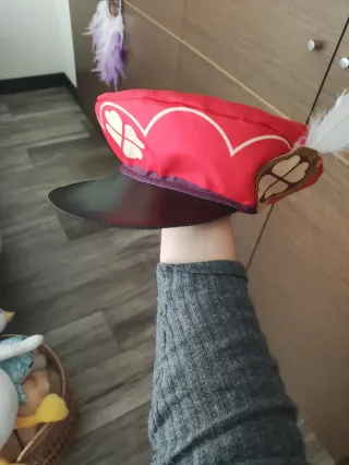 Conjunto de cosplay del personaje Klee del videojuego Genshin Impact. Incluye varias piezas para recrear el atuendo. - Diseño inspirado en el personaje. - Talla S, equivalente a 36 o 8. - Combinación de colores rojo y blanco. - Contiene: el traje completo (parte de arriba y de abajo), gorra, guantes y bufanda.