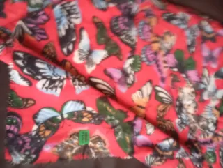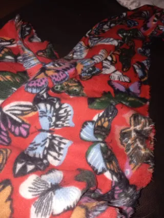 Bufanda con un bonito estampado de mariposas sobre fondo rojo. - Diseño de mariposas multicolor. - Tacto suave y cálido.