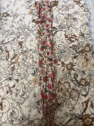 Fular con un bonito estampado floral. - Diseño alargado y estrecho. - Flecos en los extremos. - Tejido ligero y vaporoso.