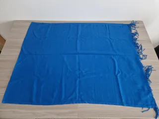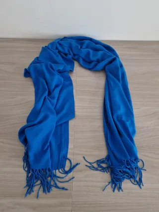 Pañuelo suave y elegante, perfecto para complementar tu atuendo. - Color azul vibrante. - Diseño con flecos en los extremos. - Tejido ligero y agradable al tacto.