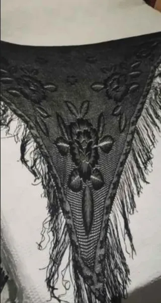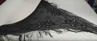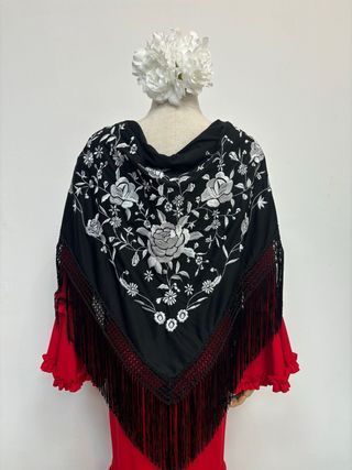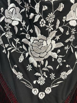 Mantón negro con bordado blanco es triángulo con medidas 165cm de largo por 80cm de ancho, es nuevo sin estrenar #teria #flamenco #romería #complemento#manton
