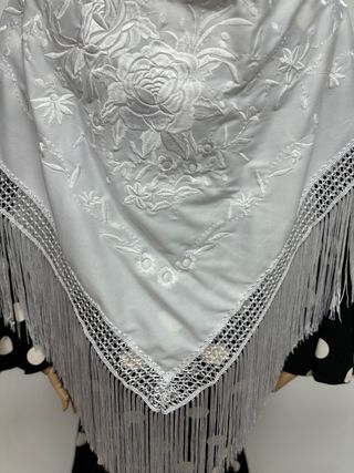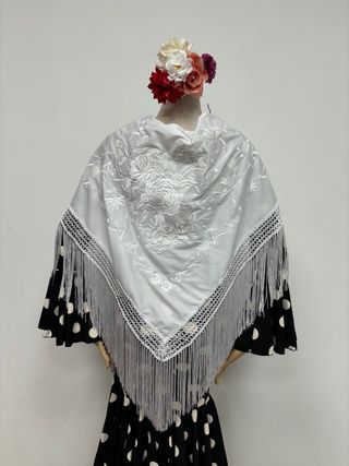 Mantón de flamenco blanco con bordado mismo color es triangulo, las medidas 150cm de largo x70cm de ancho, es nuevo sin . estrenar #feria #llamenco #romeria #manton