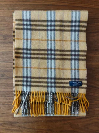 Bufanda de la prestigiosa marca Burberry con el icónico diseño de cuadros. - Diseño clásico de cuadros. - Tonos beige y marrón. 100% cashmere 168cm x 30cm