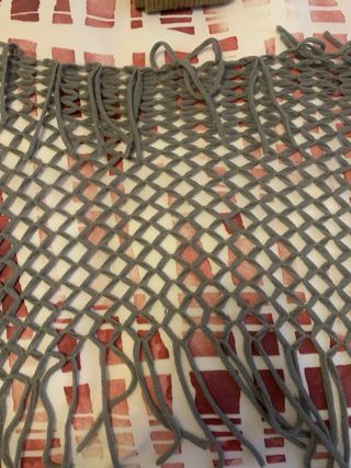 Bufanda de punto con un diseño de red y flecos. - Material suave y cálido. - Diseño abierto tipo red. - Acabado con flecos en los bordes.