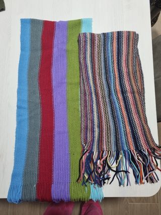 Lote de 8 fulares con diferentes diseños y colores. - Variedad de estampados y texturas. - Ideal para complementar cualquier atuendo. - Cada fular tiene un diseño único. uno X 4€. y más de uno X 3€. cada uno