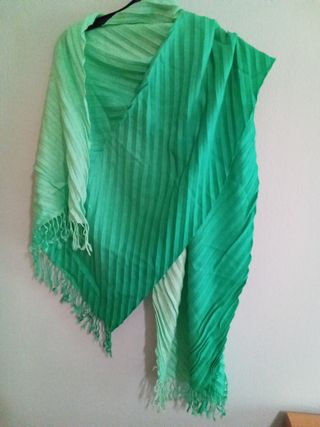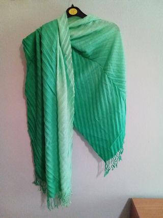 Pañuelo bufanda, nuevo sin etiquetas. Color verde/amarillo/naranja. Ancho 65 cm y largo 165 cm.