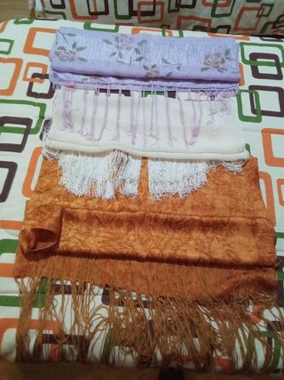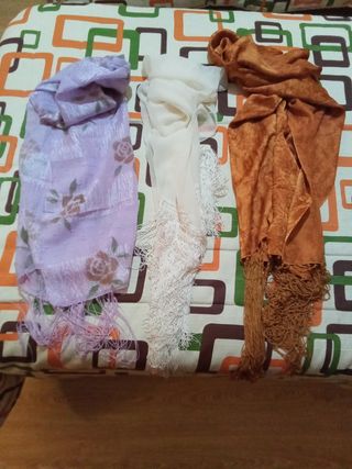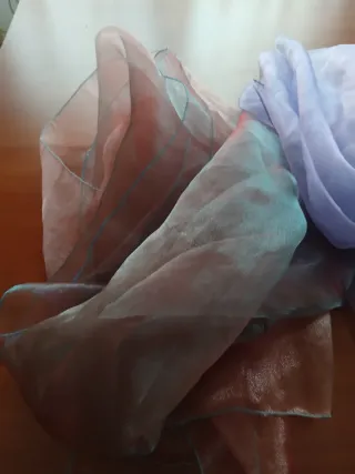 Conjunto de dos echarpes con un toque de brillo. - Tejido ligero y vaporoso. - Acabado brillante sutil. - Gran tamaño. - Ideales para vestidos o trajes de ceremonia. - usados una sola vez