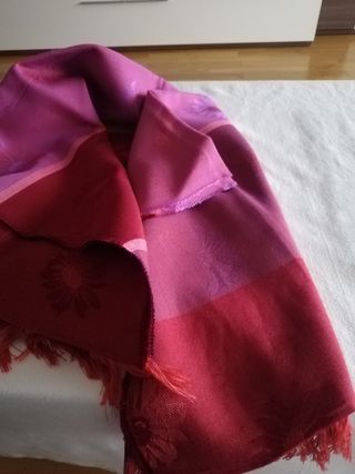 Pañuelo para el cuello. Color rojo y rosa oscuro. Usado muy poco. La tela tiene un poquito brillo. 77 cm de ancho 165 cm de largo.