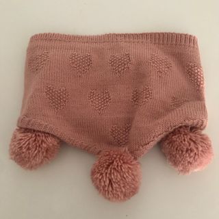 Bufanda de punto para niña con diseño de corazones. - Tejido suave y cálido. - Adornada con tres pompones. Talla 8-14 años