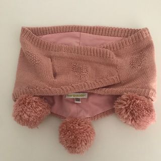 Conjunto de gorro y bufanda de punto en color rosa, adornado con pompones. - Gorro con dos pompones. - Bufanda de punto. - Diseño con copo de nieve en el gorro. - Adorno de hada y perrito en la bufanda. perrito blanco de piel de pelo por 10€. y el juego rosa de punto 10€. sin estrenar