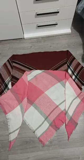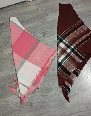 Pack de dos pañuelos/bufanda con diseño de cuadros. - Un pañuelo en tonos burdeos y blancos. - Otro pañuelo en tonos rosas y blancos.