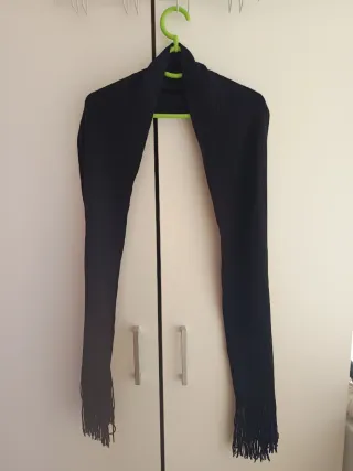 Bufanda de tejido suave con un diseño elegante. - Color negro. - Detalle de flecos en los extremos. En buen estado ✌🏼☺️