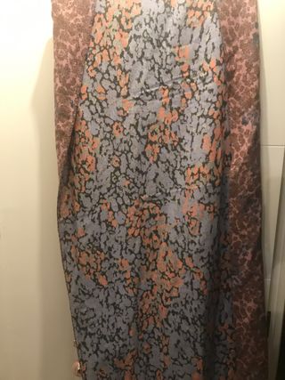 foulard pañuelo stradivarius talla 180 x 90 tonos marrones y rosado con flecos