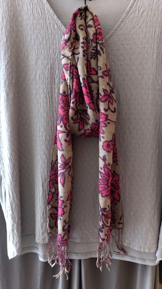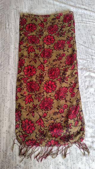 Fular de la India.Precioso diseño y colorido . Poliéster 100%.Dos metros de largo y 1,10m de ancho .Plisado.50€Nuevo y guardado.