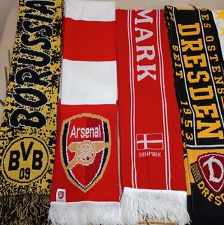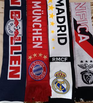 5 bufandas de equipos de fútbol. Están en buen estado y son ideales para aficionados. dormunt, Bayern de Munich,benfica, leipzig y el arsenal #realmadrid #dortmund #arsenal #chelsea #rbleipzig #barcelona #bayern #benfica #alemania #portugal #atleticodemadrid