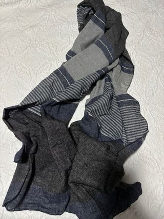 Chal de hilo con un diseño de rayas en tonos azules y grises. - Tejido ligero y transpirable. - Diseño a rayas. - Acabado suave.