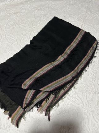 Chal de hilo con un diseño elegante y llamativo. - Base en color negro. - Tiras decorativas en varios tonos.