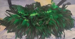 Este accesorio de plumas añade un toque de color y textura. - Diseño con plumas verdes y negras. - Ideal para complementar un disfraz o atuendo.