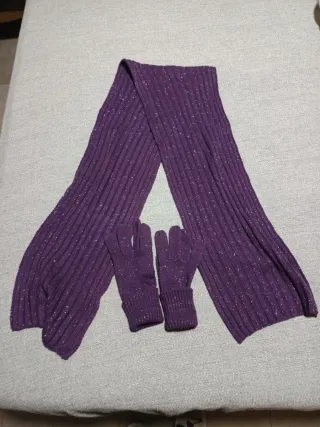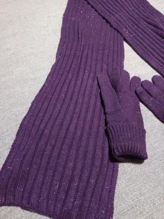 Conjunto de bufanda y guantes a juego. El tejido tiene un acabado brillante. - Bufanda larga y ancha. - Guantes de punto. - Diseño acanalado.