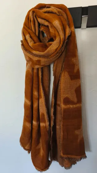 Preciosa pashmina con un diseño de estrellas y franjas en tonos marrones. - Diseño de estrellas y franjas. - Acabado con flecos en los bordes. Medidas aproximadas 195x60cm No hago envíos por correos sólo por punto de recogida