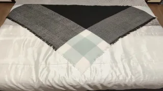 chal de hombre de hilo, grande, cuadrado, de color negro, gris y blanco con cuadrados amplios. algún desperfecto. las imágenes forman parte de la descripción. envíos por wallapop.