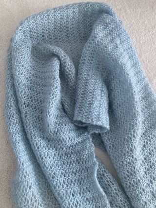 Azul bebé..Rematado con elástico. Medidas : 2. 20/45. Abriga y no pesa nada.. IDEAL!
