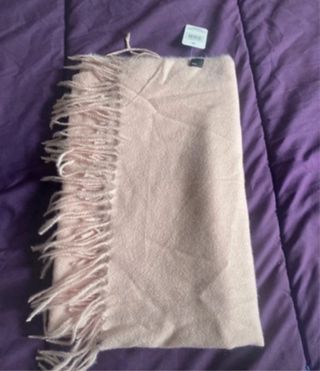 Es una bufanda,de color rosa,con un bonito corazón.Es suave y abrigada y está como nueva.Mide 75 cm.por 10 cm.