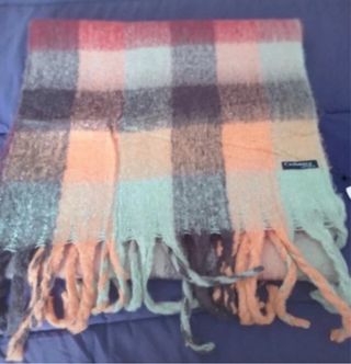 Bufanda con diseño de cuadros en tonos azules y verdes. Perfecta para añadir un toque de color a tu atuendo. - Diseño a cuadros. - Tacto suave y cálido. - Flecos en los extremos.