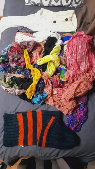 Conjunto variado de pañuelos y fulares para mujer, ideales para complementar cualquier atuendo. - Diseños y estampados diversos. - Tejidos ligeros y fluidos. - Tonos vibrantes y sutiles.