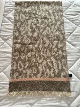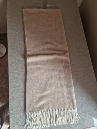Elegante bufanda grande, unisex de lana reversible, como nueva. Marca: Zara Color: beige y gris. Medida aprox: 70 cm ancho y 180 cm largo Solo puesta en una ocasión. Muy elegante