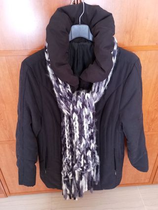 Abrigo corto de Sra., color negro, nuevo...da tallas tanto M / L. Esta acolchado, por lo que no pesa nada, pero es muy abrigaito. Regalo como complemento la bufanda que es grande.