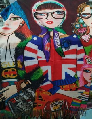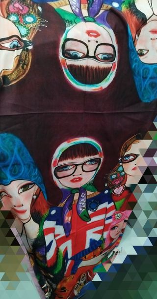 bufanda chale pañuelo de tela pasmina Muy suave. con el dibujo de 3-6 mujeres. totalmente nueva. nunca usado. conserva la etiqueta marca angelina zara Bershka pull and bear desigual Stradivarius h&m