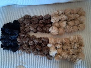 Original bufanda de bolas de pelo. También puede ser utilizada como cuello. Por su diseño de bolas, facilita dar la forma que se desee al insertar las bolas por donde quieras. Medidas: 130 x 18 cm.