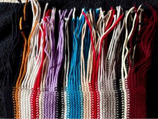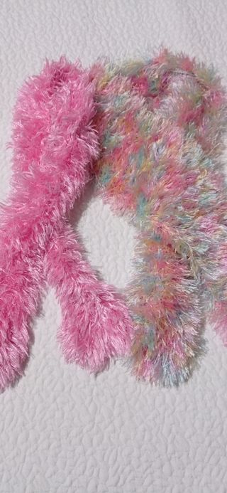 Dos bufandas de confección artesanal, la pequeña mide 105 de largo por 7 cm de ancho, la otra mide 130 cm de largo x 13 de ancho