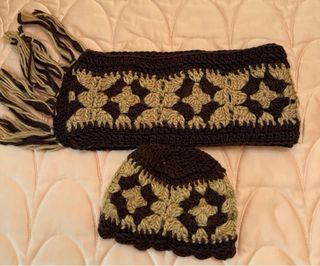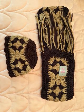 Vendo conjunto de gorro y bufanda a juego, sin estrenar, hecho a mano.