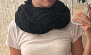 Preciosa bufanda tipo cuello, de color negro. Es de tejido suave y cálido, perfecta para el invierno. - Tejido de punto grueso. - Diseño clásico y versátil.