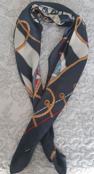 Pañuelo con un diseño inspirado en el mar. - Estampado de brújula y cuerdas náuticas. - Tonos azules y multicolor.
