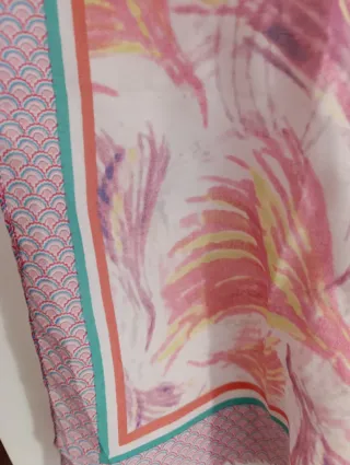Foulard vaporoso con un diseño vibrante y elegante. - Estampado con motivos alegres y coloridos. - Tacto suave y ligero. - Sin desperfectos.
