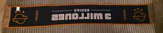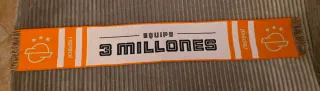 Bufanda conmemorativa del equipo 3 Millones de Repsol. - Diseño con logo de Repsol y estrellas. - Colores naranja y blanco. - Flecos en los extremos.