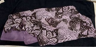 Elegante pañuelo foulard con un estampado de mariposas en tonos morados y marrones. Su diseño detallado y el tamaño grande lo convierten en un accesorio versátil. - Estampado de mariposas. - Diseño grande. - Tejido ligero y fluido.