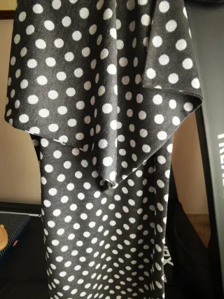 Bufanda de punto con un diseño clásico de lunares. - Tejido suave y cálido. - Estampado de lunares blancos sobre fondo negro.
