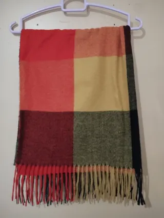 Bufanda con diseño de cuadros en varios tonos. Perfecta para añadir un toque de color a tu atuendo. - Diseño a cuadros. - Acabado con flecos.