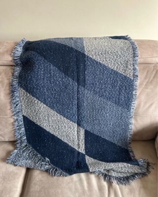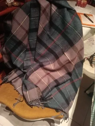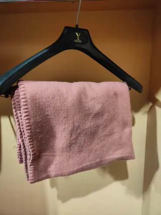 Una invitada a una fiesta se ha dejado olvidado este foulard y lo pongo en venta. Manta o foulard de cachemir muy suave y calentita. Ideal para estar cómodo en casa o para llevarla contigo. - Etiqueta de 'Cashmere' visible. - Acabado con costuras decorativas.