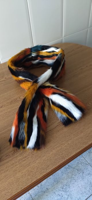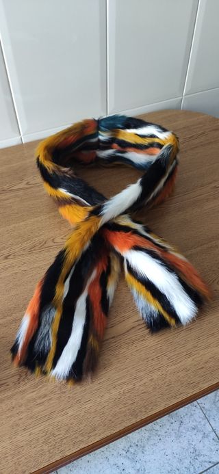Nueva sin estrenar. En perfecto estado. Lana de varios colores en distintos puntos de calceta. Muy moderna y cómoda de usar, es cerrada tipo cuello o braga.