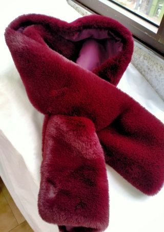 Bonita bufanda. Es de color granate oscuro y tiene un tacto super suave. Está forrada y tiene una abertura para poder unir los extremos. Es de Zara y está sin usar.