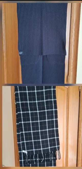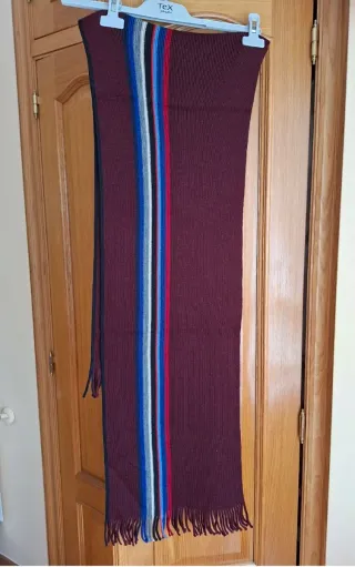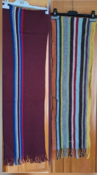 Bufandas. Bufanda granate. Marca El Corte Inglés. 100% Lana (16€). Bufanda rayas de colores. Marca Gant. 100% Lana (14€). Sin estrenar