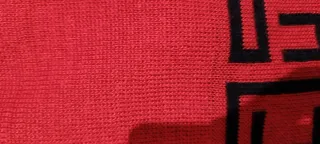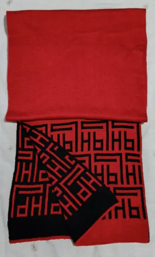 Bufanda de la marca PdH con un diseño llamativo. - Tejido de punto. - Combinación de colores rojo y negro. - Estampado geométrico.