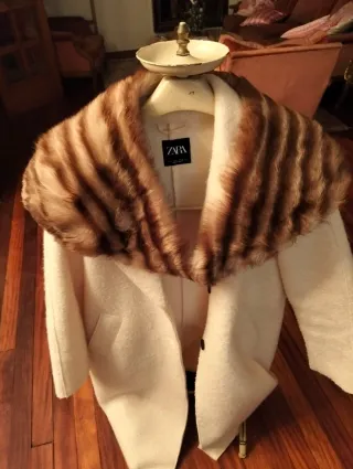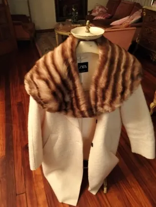 Precioso cuello de piel o bolero. - Diseño de rayas marrones y blancas. - Aporta un toque elegante a cualquier prenda.
